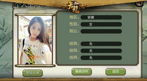 婚姻情感状况及结拜状况也会在界面显示。此外,更能够上传自己的照片作为头像,在这个明明能够靠脸吃饭的年代,要什么才调!玩家亦能够检查好友的个人空间。